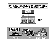 サムボカップルと法律婚カップルの法的な違いは、第1に、カップル解消時の財産分割です。